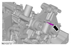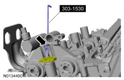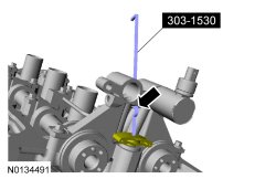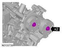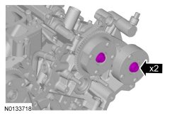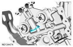 23. NOTE: The 2 VCT (Variable Camshaft Timing) oil control solenoids are removed for clarity.