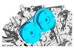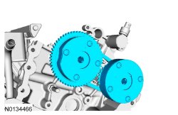 14. Assemble the 2 LH (Left Hand) VCT (Variable Camshaft Timing) assemblies and the LH (Left Hand) secondary timing chain.