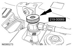 Disconnect the high-pressure and low-pressure service valves and remove 219-00069 from the vehicle.