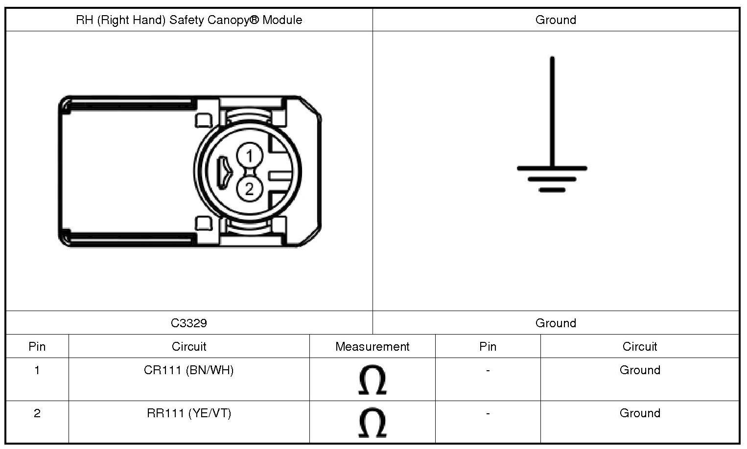 The RCM (Restraints Control Module) continuously monitors the RH (Right Hand) Safety Canopy(R) module circuits for the following faults: