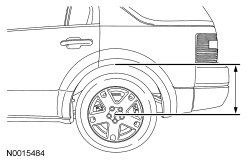 3. Use a jackstand to raise the rear suspension until the distance between the center of the hub and the lip of the fender is equal to the measurement taken in Step 1 of the procedure (curb height).