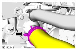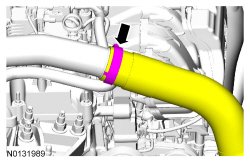 11. Loosen the clamp and disconnect the CAC (Charge Air Cooler) inlet tube.
