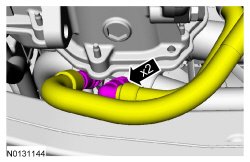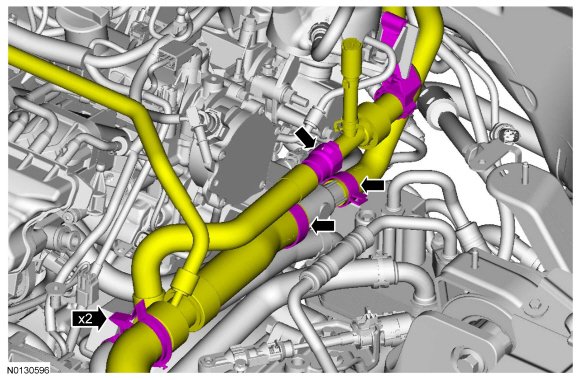 - Detach the hoses from the 2 retaining clips.