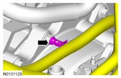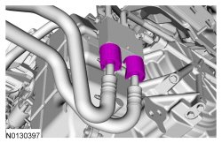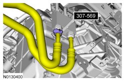 34. Using 307-569 , disconnect the transaxle fluid cooler tubes from the transaxle fluid cooler thermal bypass valve.