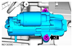 32. Remove the 2 transaxle-to-oil pan bolts.