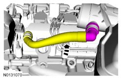 48. Disconnect the PCV (Positive Crankcase Ventilation) tube from the turbocharger inlet pipe and position it aside.