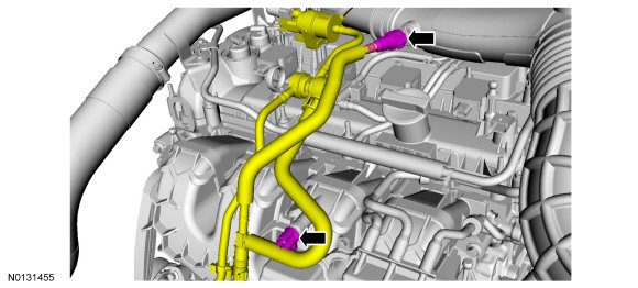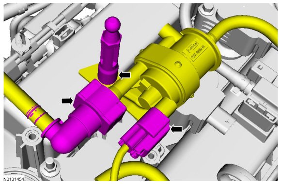 3. Disconnect the purge valve electrical connector and the vapor quick connect coupling and remove fastener. REFER to Disconnect - Type 1 or REFER to Disconnect - Type 2 or REFER to Disconnect - Type 5 .