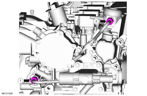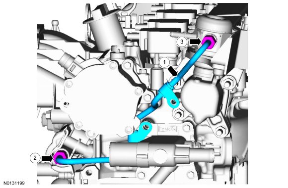 1. NOTE: Make sure that a new high pressure fuel tube 9J323 is installed.