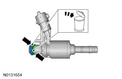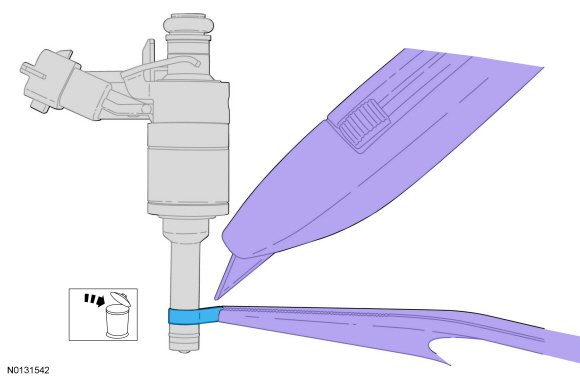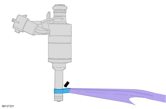 NOTE: Lubricate the upper fuel injector O-ring seals with Motorcraft(R) SAE 5W-30 Premium Synthetic Blend Motor Oil (US); Motorcraft(R) SAE 5W-30 Super Premium Motor Oil (Canada).