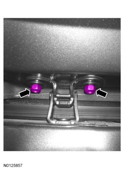 1. With the help of an assistant, position the liftgate to the vehicle and loosely install the liftgate-to-hinge bolts.