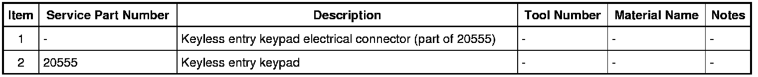 6. NOTE: The keyless entry keypad is attached to the door with double-sided tape. Before installing the new keypad, clean the window applique mounting area with an appropriate alcohol-based cleaner and install new double-sided tape to the keypad.