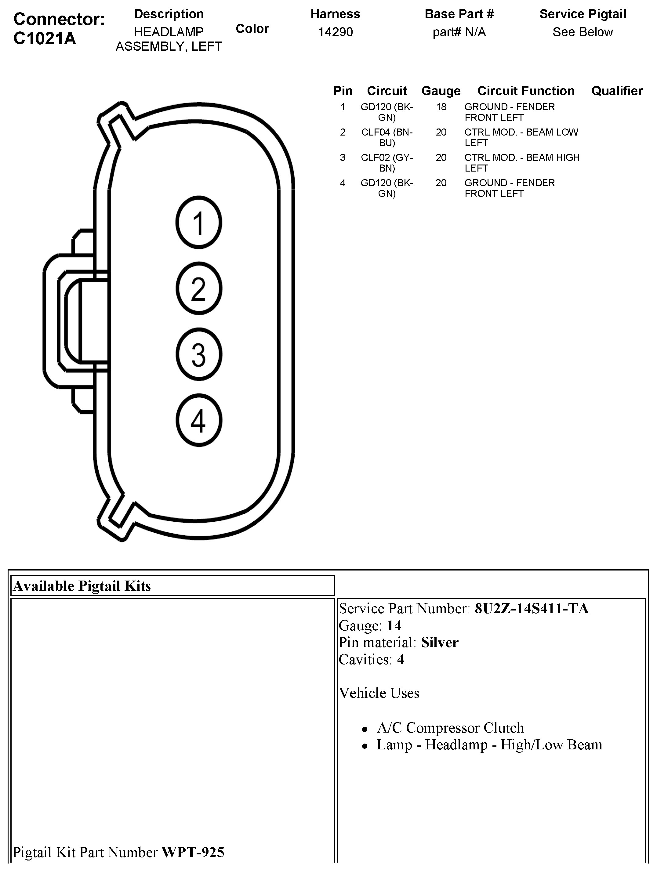 C1021A Headlamp Assembly, Left