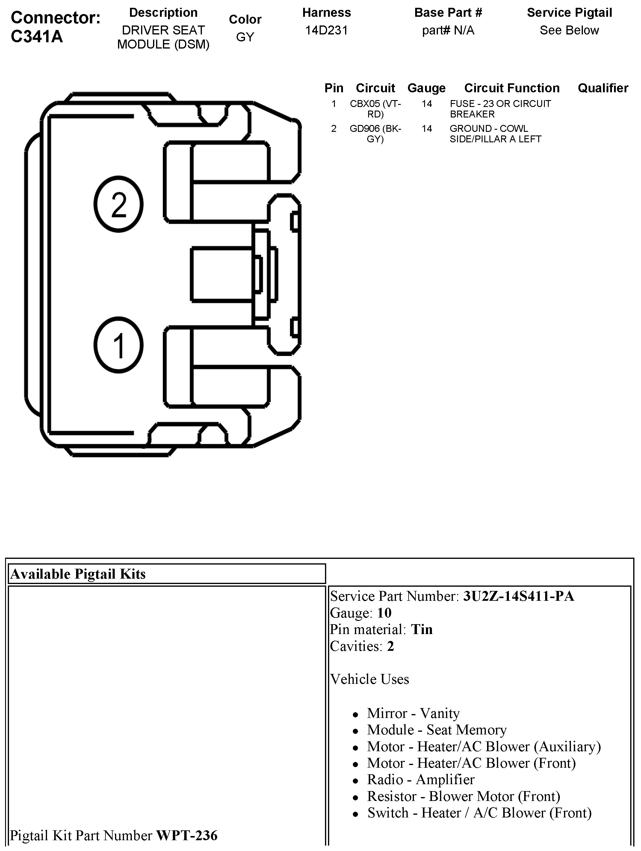 C341A Driver Seat Module (DSM)