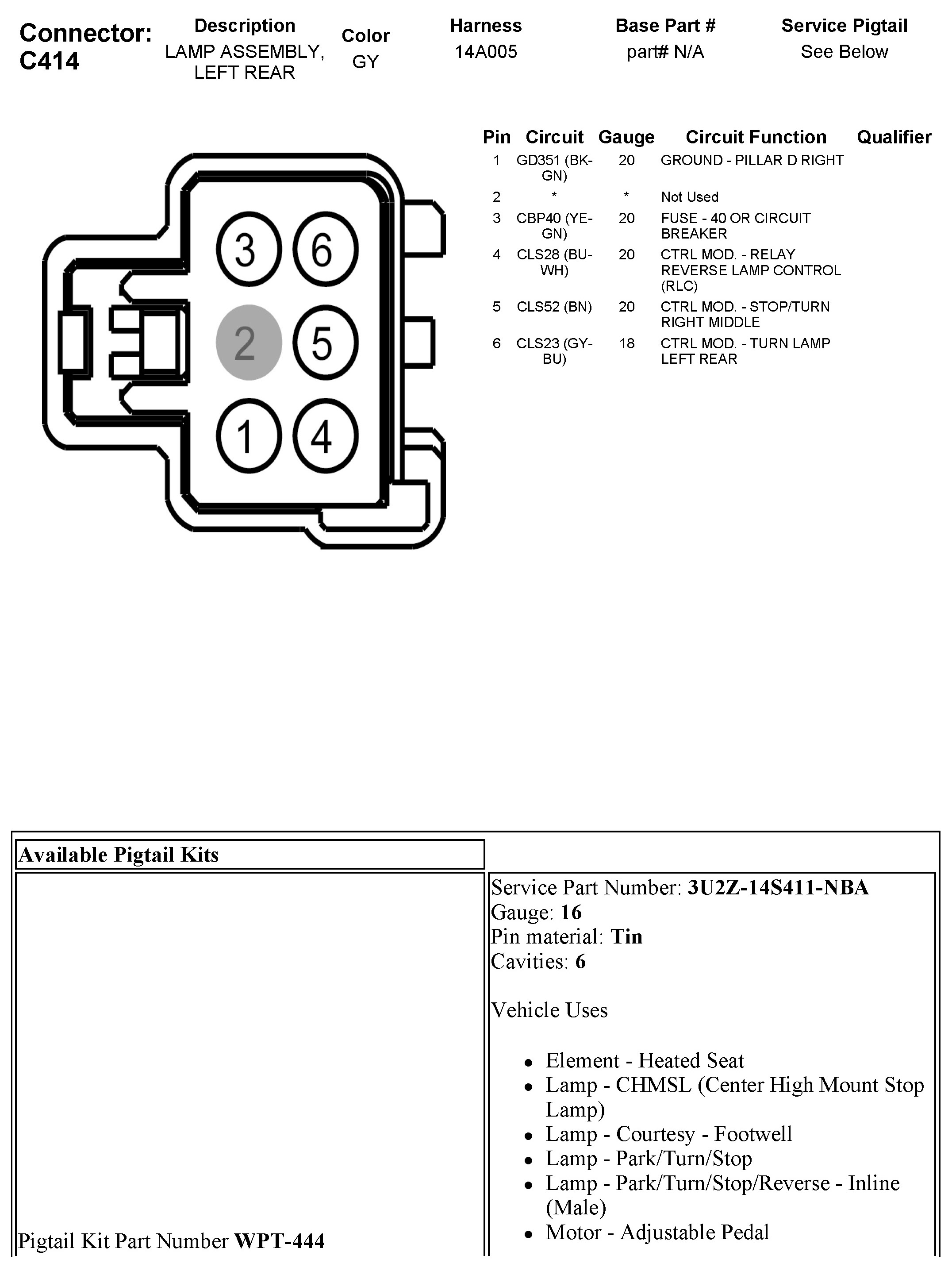 C414 Lamp Assembly, Left Rear