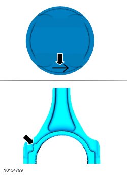 1. NOTE: If the piston and/or connecting rod are being installed new, the piston rod orientation marks and the arrow on the top of the dome of the piston should be facing toward the front of the engine block.