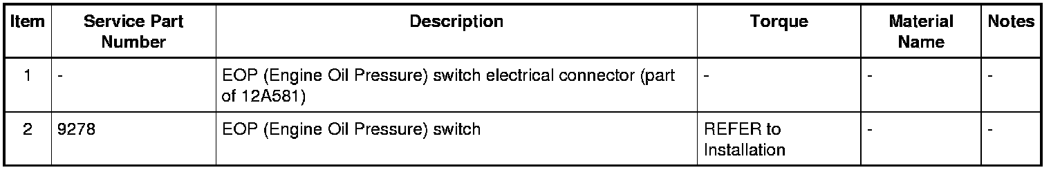 1. NOTE: Apply Thread Sealant with PTFE to the EOP (Engine Oil Pressure) switch threads prior to installation.