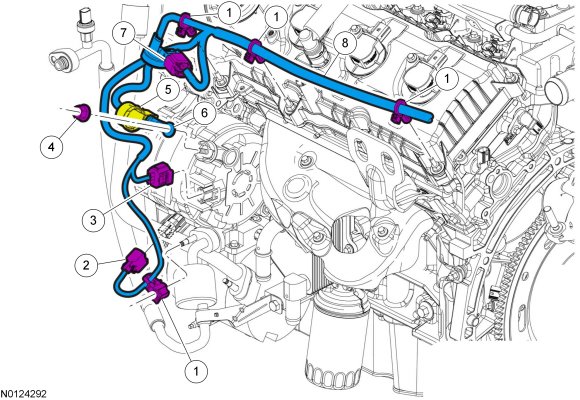 16. Disconnect the 3 wire harness retainers from the LH (Left Hand) valve cover stud bolts.