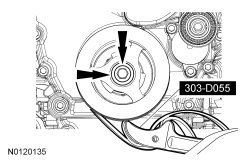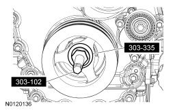 Using the Front Cover Oil Seal Installer and Crankshaft Vibration Damper Replacer, install the crankshaft pulley.