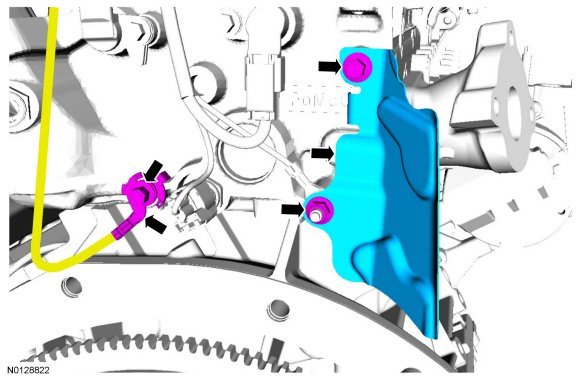166. Install the ground strap and bolt. Install the CMP (Camshaft Position) heat shield, bolt and the nut.