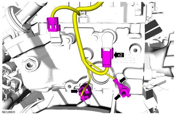 164. Connect the 2 RH VCT (Variable Camshaft Timing) solenoid electrical connectors.
