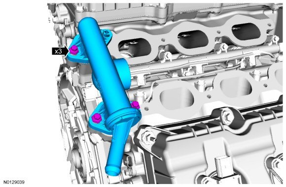 Using new O-ring seals, install the coolant inlet pipe.
