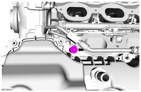 130. Ensure the VCT (Variable Camshaft Timing) seals in the valve cover are below the top of the VCT (Variable Camshaft Timing) oil control solenoid electrical connector or the VCT (Variable Camshaft Timing) seal may leak oil.
