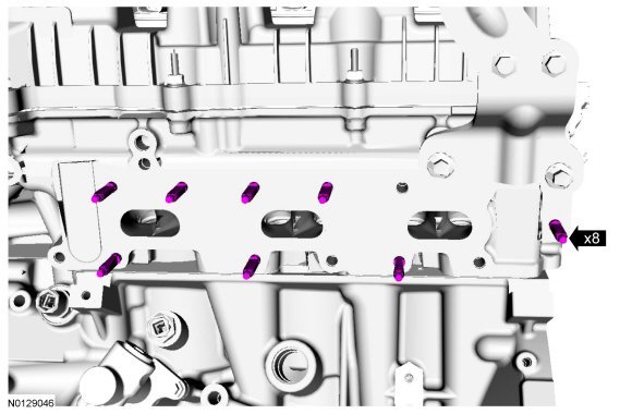 124. Install the 8 new LH exhaust manifold studs.