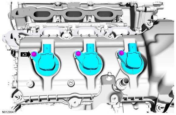 123. Install the 3 RH ignition coil-on-plug assemblies and the 3 bolts.