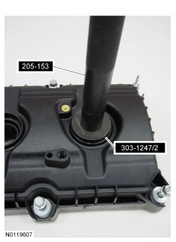 Using the VCT (Variable Camshaft Timing) Spark Plug Tube Seal Installer and Handle, install new spark plug tube seals.
