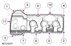129. Using a new gasket, install the LH valve cover and tighten the 11 stud bolts in the sequence shown.