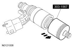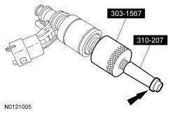 Using the Differential Bearing Cone Installer and Handle, install new VCT (Variable Camshaft Timing) solenoid seal(s).