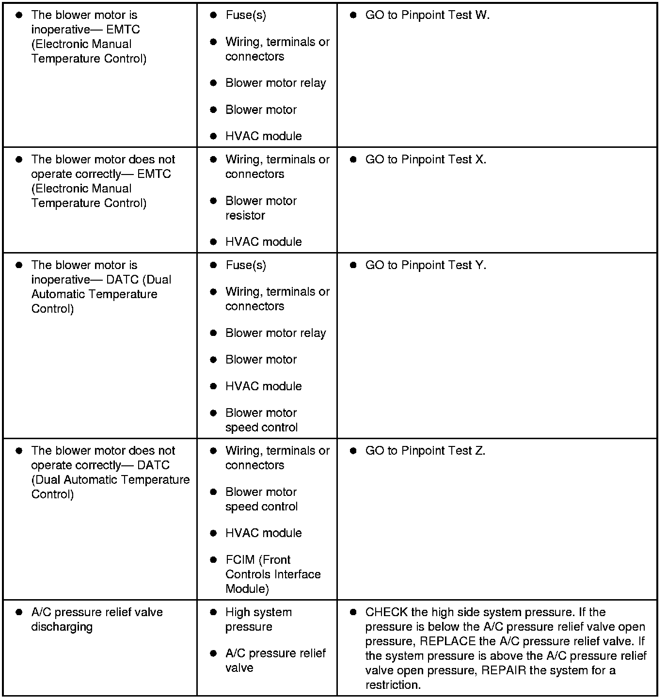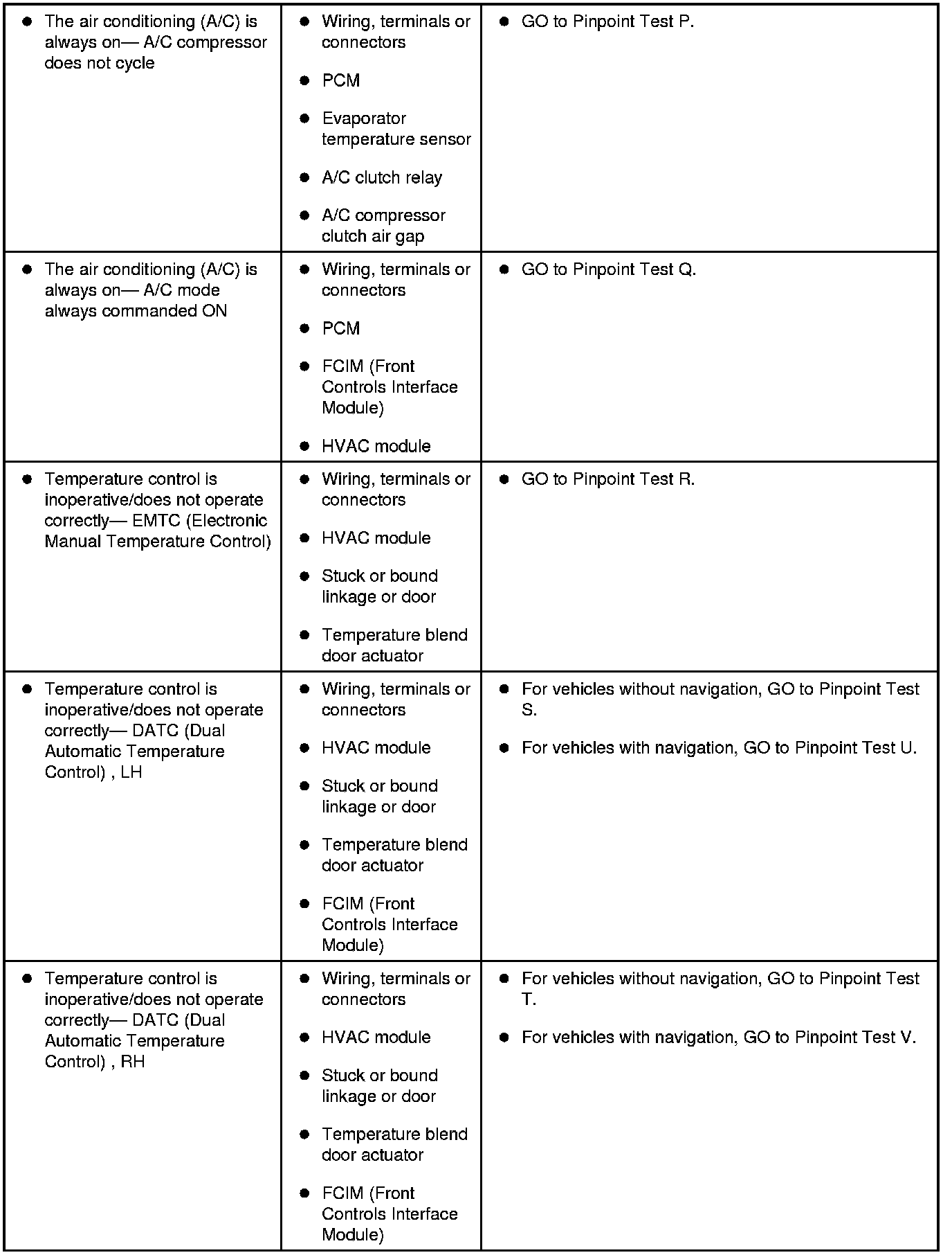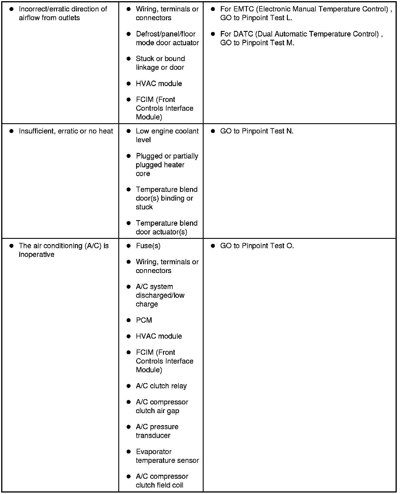 Symptom Chart - Climate Control Systems