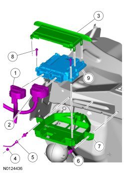 5. Position the PCM (Powertrain Control Module) onto the support bracket and install the 2 bolts.