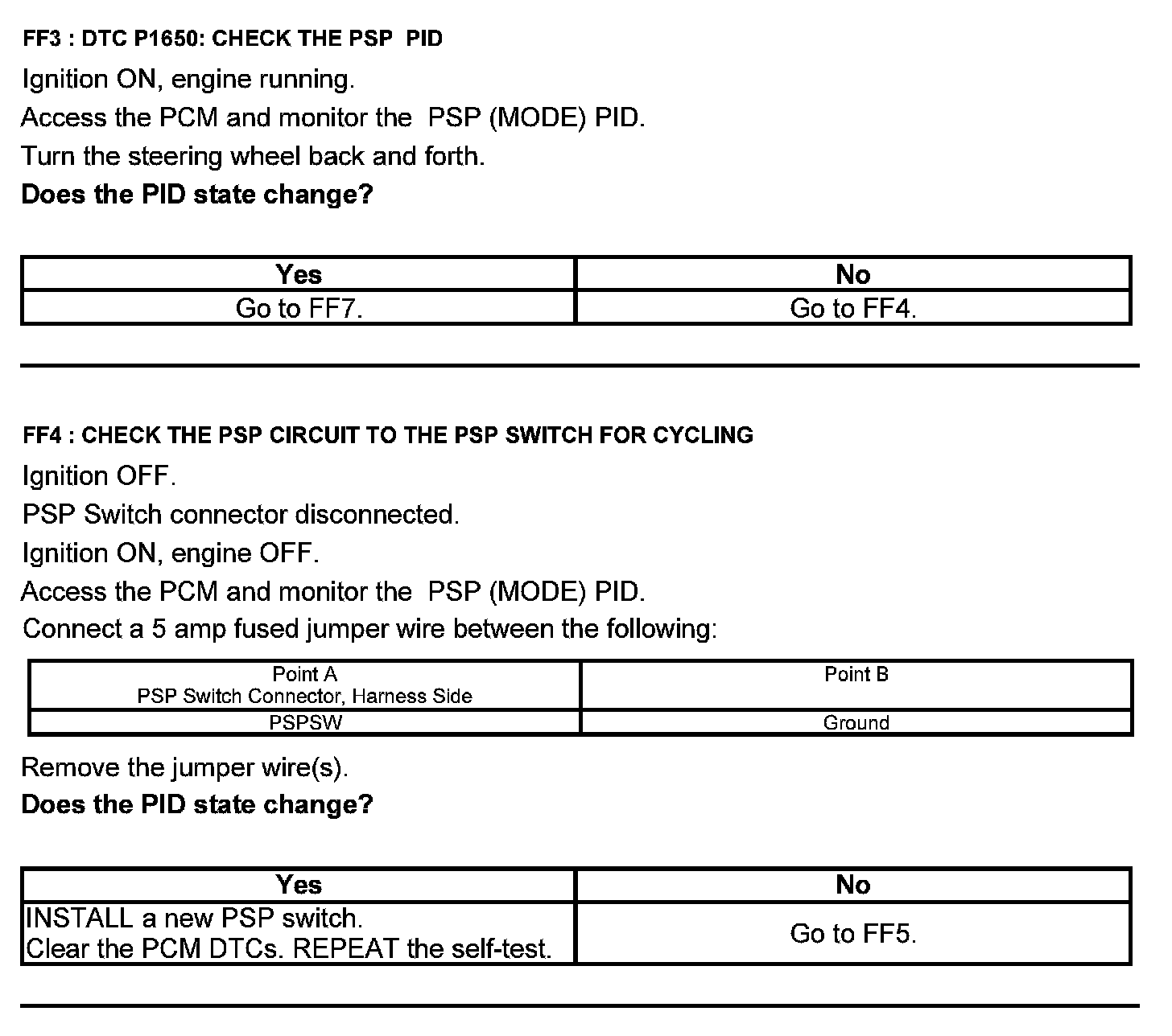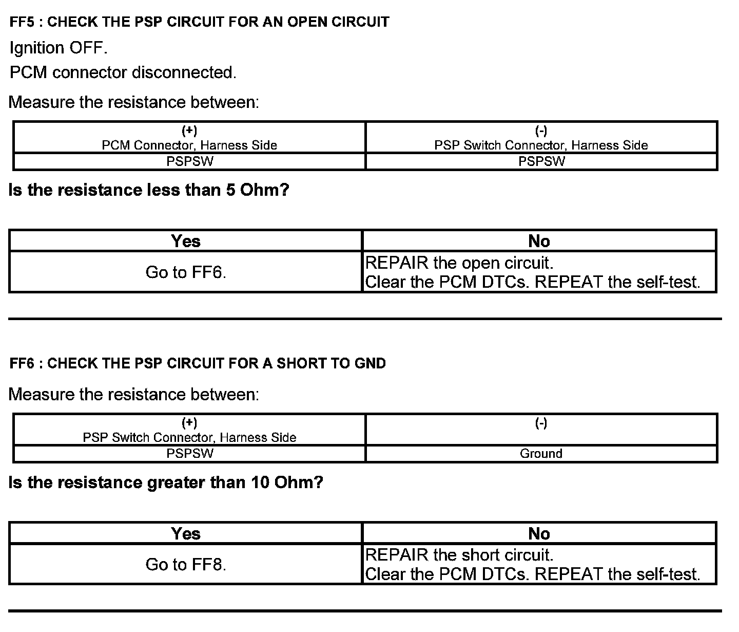 Test FF: Power Steering Pressure (PSP) Switch