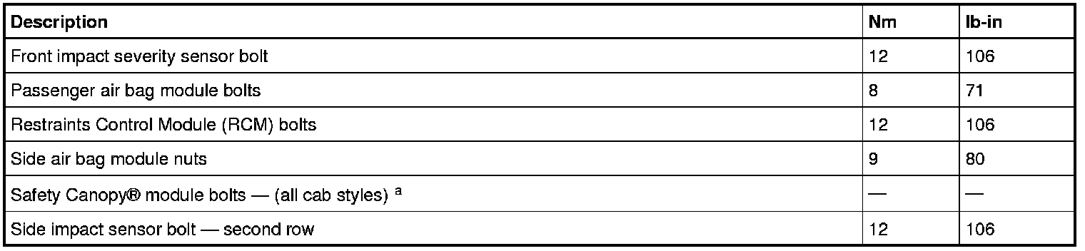 Air Bag Systems: Specifications