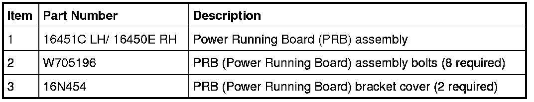 5. Remove the PRB (Power Running Board) assembly front bracket lower bolts.