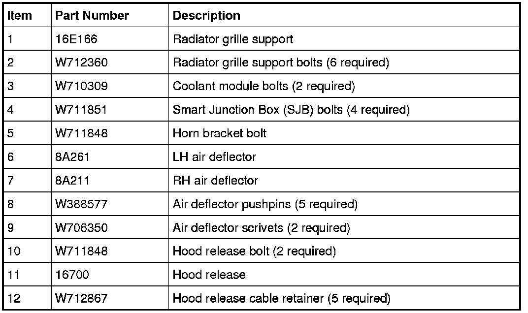 13. NOTE: It will be necessary to lift the cooling module upward and slide the radiator support forward to separate the radiator grille support from the cooling module.