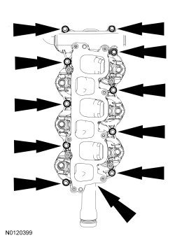 106. NOTICE: If the engine is repaired or replaced because of upper engine failure, typically including valve or piston damage, check the intake manifold for metal debris. If metal debris is found, install a new intake manifold. Failure to follow these instructions can result in engine damage.