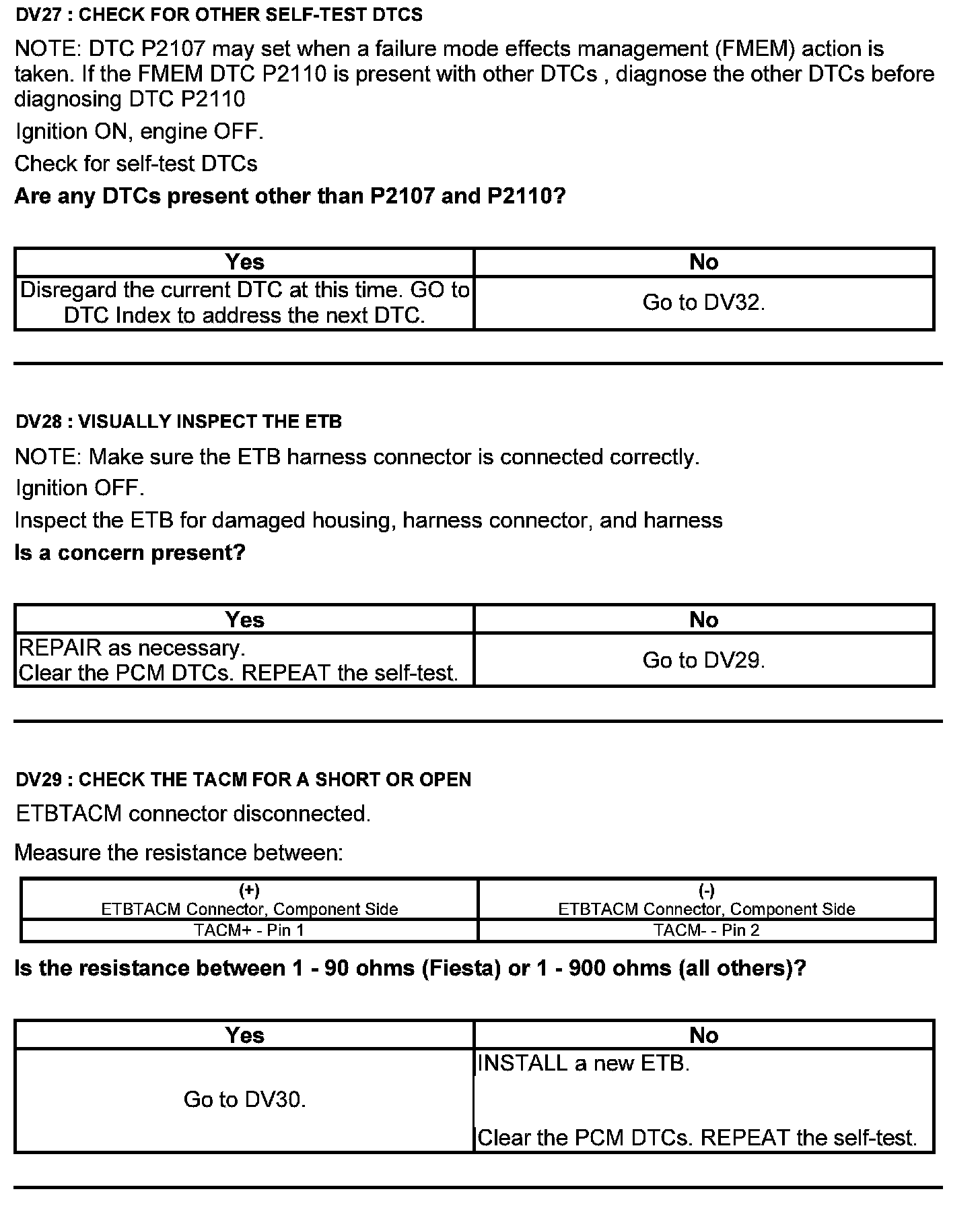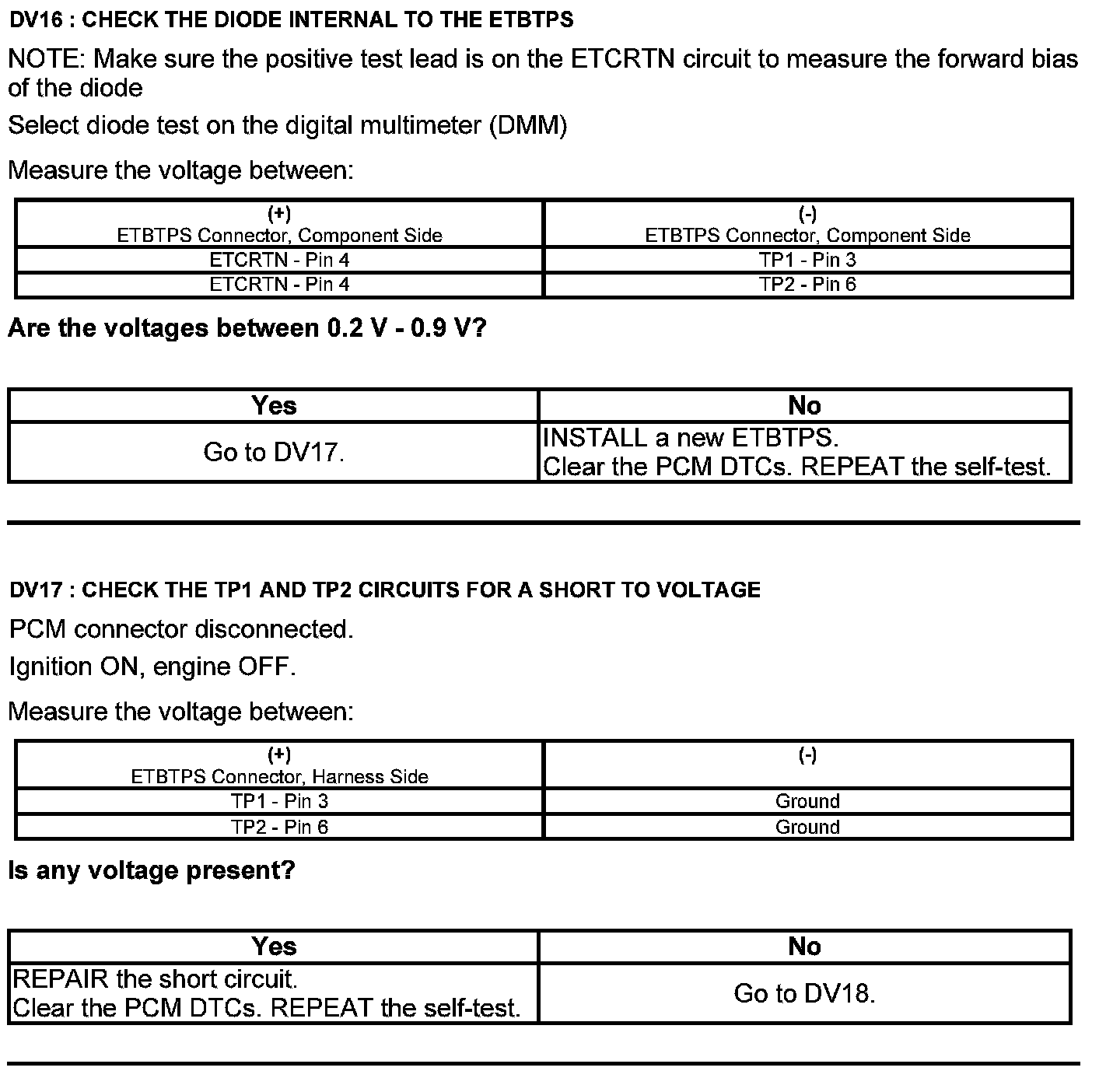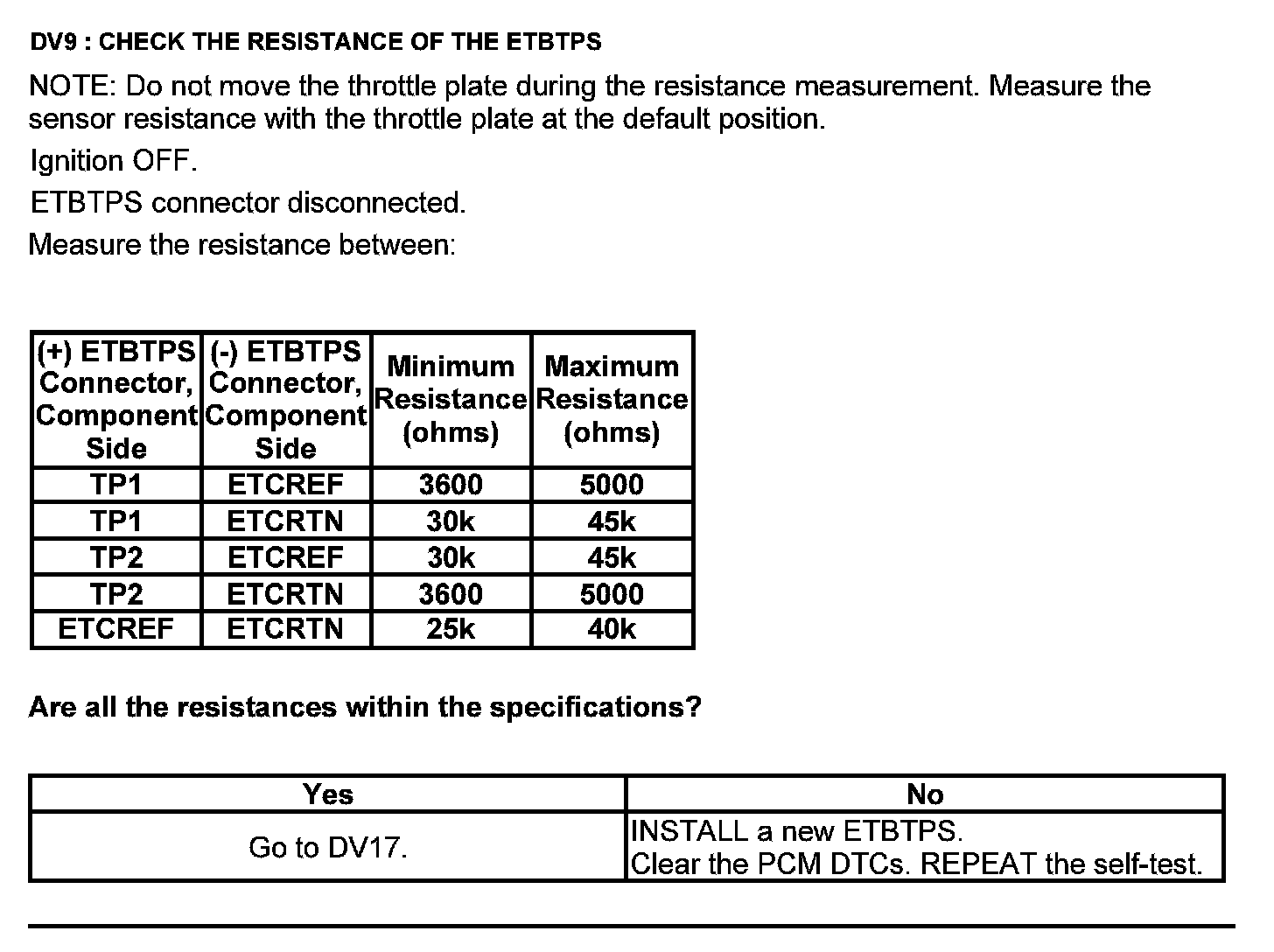 Test DV: Throttle Body Assembly Electronic Throttle Control (ETC)