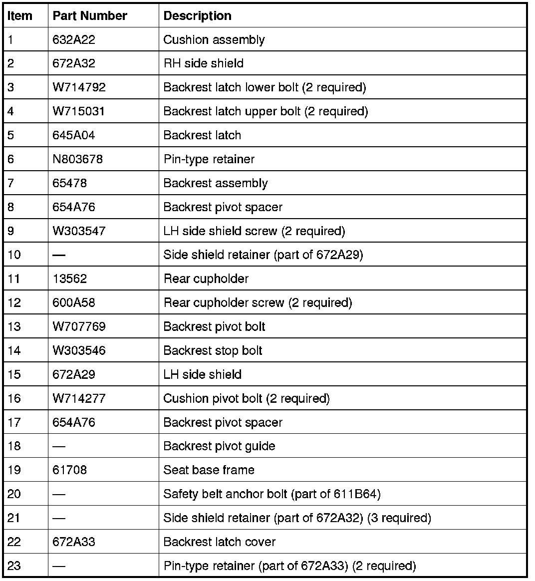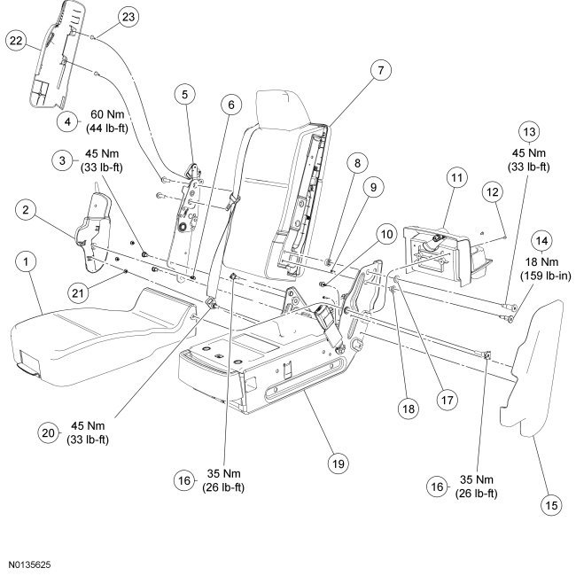 Seat - Exploded View, Front, Center