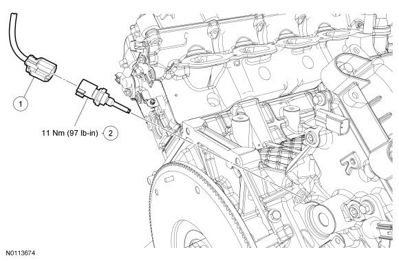 NOTE: Position the VCT (Variable Camshaft Timing) variable force solenoid and tighten the bolts in 2 stages.