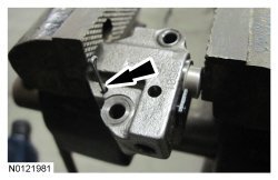 NOTE: Complete the following 3 steps on both the LH and RH primary timing chain tensioners.