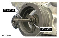 15. Using the Front Crank Seal and Damper Installer and the Front Cover Oil Seal Installer (plate only), install the crankshaft pulley.