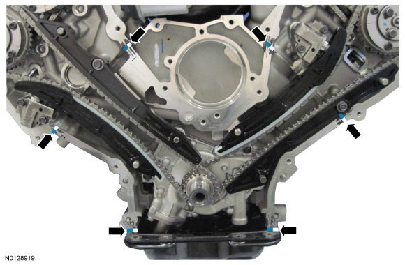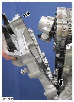 1. NOTICE: The Variable Camshaft Timing (VCT) variable force solenoid pins must be fully depressed to avoid interference with the VCT (Variable Camshaft Timing) valve tips when installing the engine front cover. Failure to follow these instructions can result in damage to the engine.