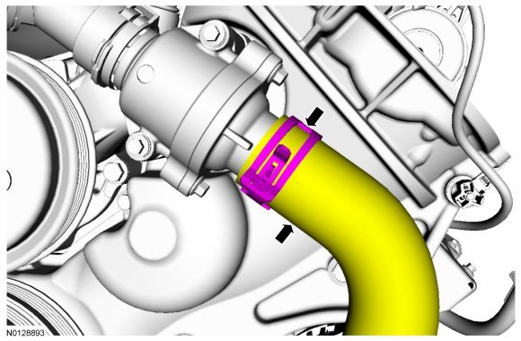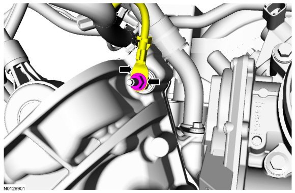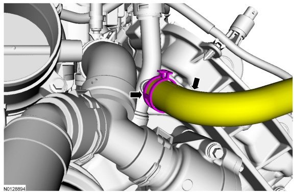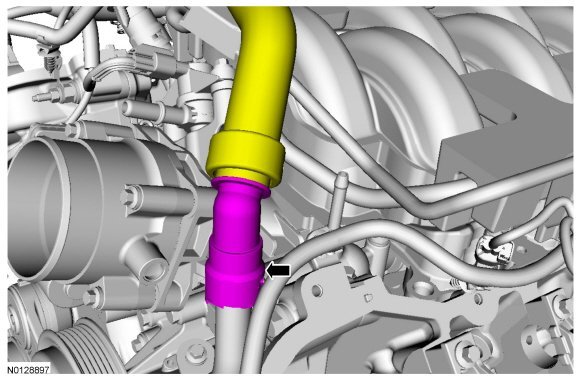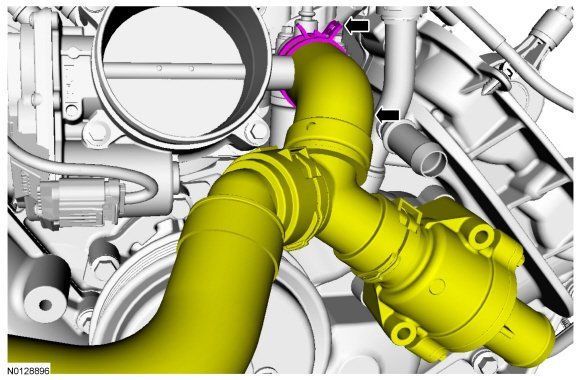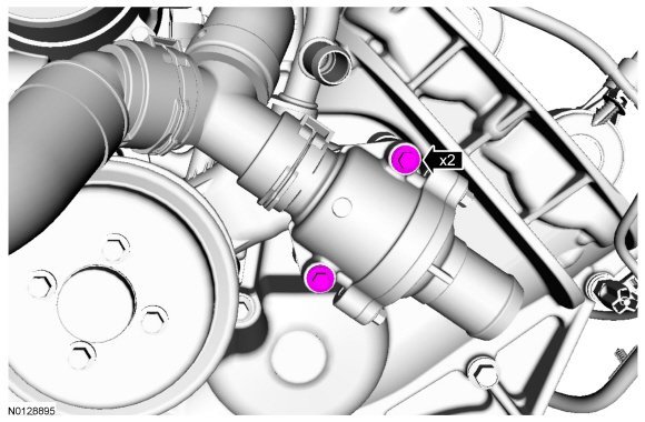 25. NOTE: Lubricate the new thermostat housing O-ring seal with clean engine coolant.
