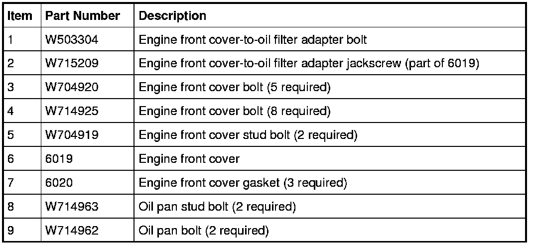 2. NOTE: The engine front cover must be installed and all fasteners final tightened within 5 minutes of applying the sealer. If this cannot be accomplished, install the engine front cover and tighten fasteners 6, 7, 8, 9, 10 and 11 to 8 Nm (71 lb-in) within 5 minutes of applying the sealer. All of the fasteners must then be final tightened within 1 hour of applying the sealer. If this time limit is exceeded, all sealant must be removed and the sealing area cleaned. To clean the sealing area, use silicone gasket remover and metal surface prep. Follow the directions on the packaging. Failure to follow this procedure can cause future oil leakage.