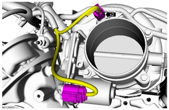 14. Disconnect the throttle body and Evaporative Emission (EVAP) purge valve electrical connectors.