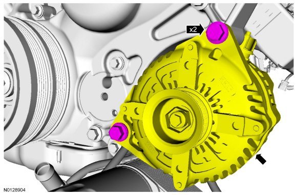 20. Install the ground wire and nut to the engine front cover stud bolt.
