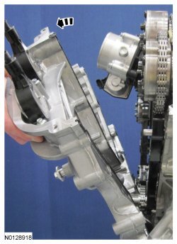 3. NOTE: Make sure that the engine front cover gaskets are in place on the engine front cover before installation.