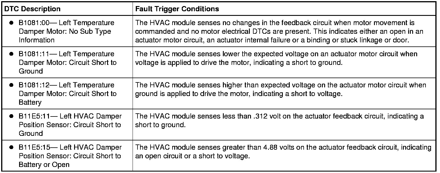 To rotate the temperature blend door actuator, the HVAC module supplies voltage and ground to the temperature blend door actuators through the door actuator motor circuits. To reverse the temperature blend door actuator rotation, the HVAC module reverses the voltage and ground circuits.
